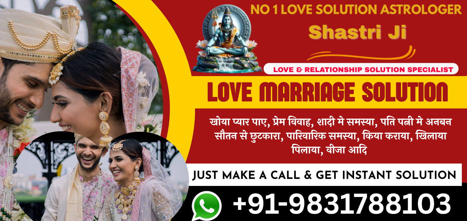 Our love marriage specialist astrologer can make it possible for you to get married to the person you have been in love with. Consult your marriage problems call now